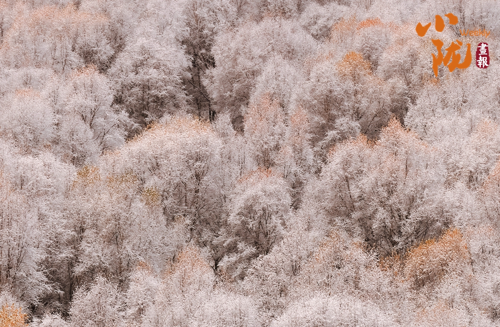 山腰墨綠色的松林,松枝上掛滿了毛茸茸的雪凇。那不是雪,那是大自然最細膩的工筆,描繪出的雪凇奇觀。風起時,細碎的冰晶簌簌飄落,折射出萬千銀光,如夢似幻。